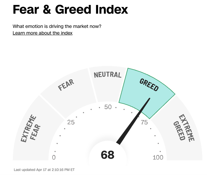 Meanwhile, the CNN Fear & Greed index climbed out of the cellar and is now 61.