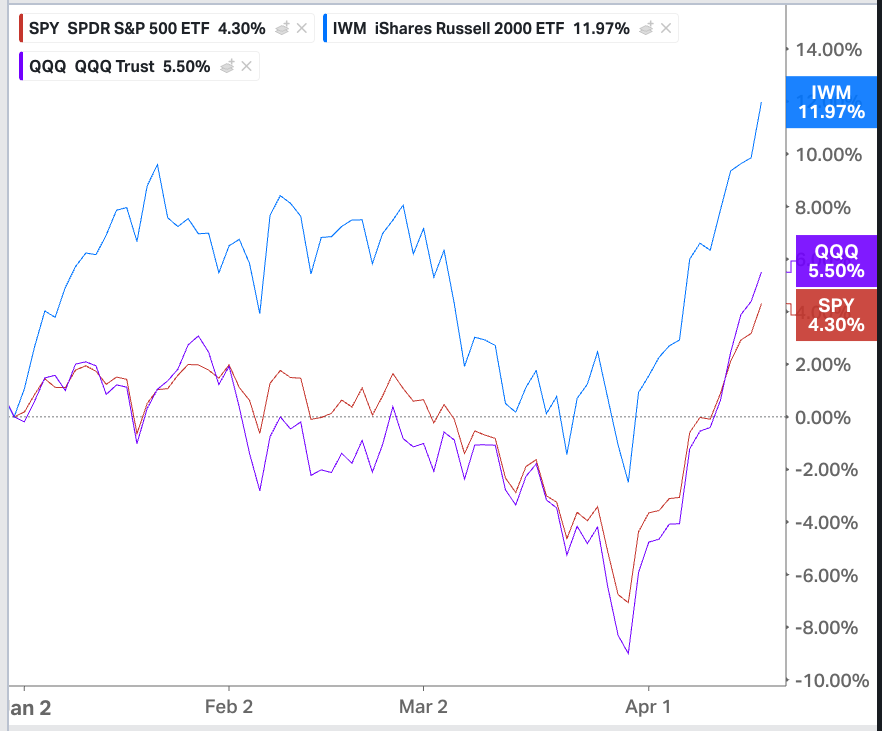 IWM is now up 12% year-to-date, crushing SPY and QQQ: