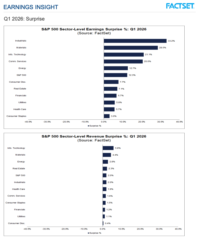 According to FactSet, 28% of S&P 500 companies have reported Q1 earnings, and things are looking good.