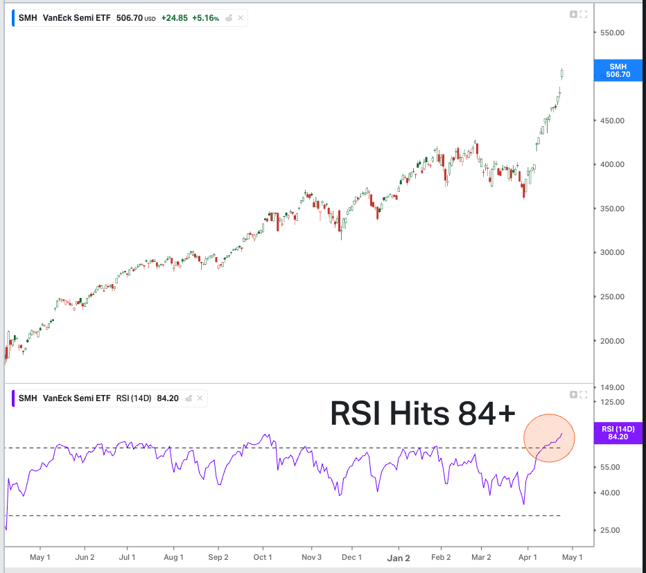 SMH's RSI is now at 84+, so it looks overheated.